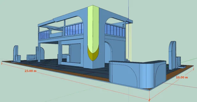 غرفه مینیمال دوطبقه جزیره 230 متر مربع متراژ کفسازی همکف + 60 متر طبقه دوم سبک منحنی و مینیمال مناسب غرفه های محیط زیست ، ارتباطی و بانکی فرمتهای : 3DS - SKP PASSWORD : booth.ir